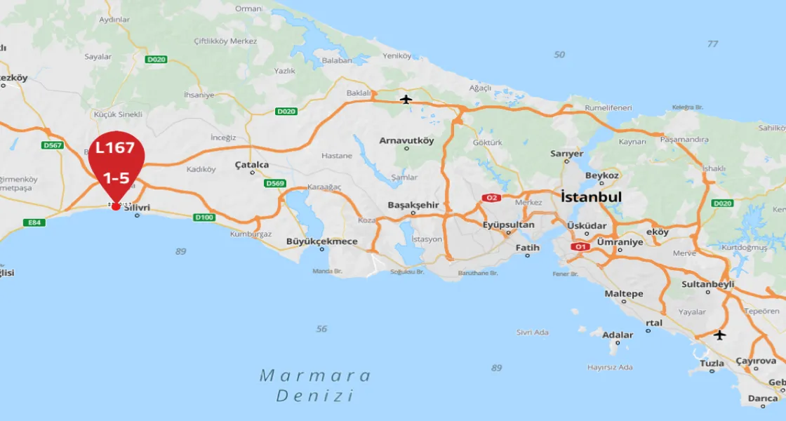 للبيع 5 قطع أراضي مختلفة المساحة بمجموع مساحتها 4830 متر مربع في اسطنبول منطقة سيليفري – معمار سنان