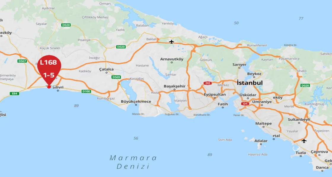 للبيع 5 قطع أراضي مختلفة المساحة بمجموع مساحتها 5050 متر مربع في اسطنبول منطقة سيليفري – معمار سنان
