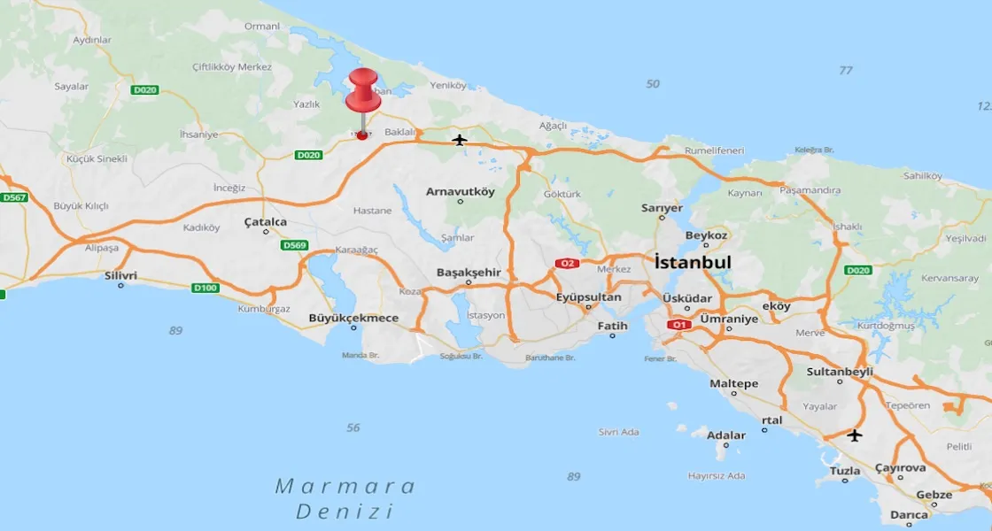 • تبعد عن قناة اسطنبول الجديدة مسافة 5 كيلومتر
