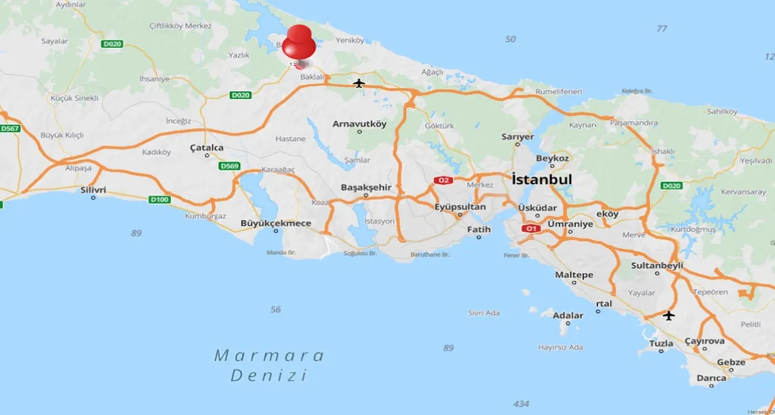 - تبعد عن قناة اسطنبول الجديدة مسافة 2.7 كيلومتر
