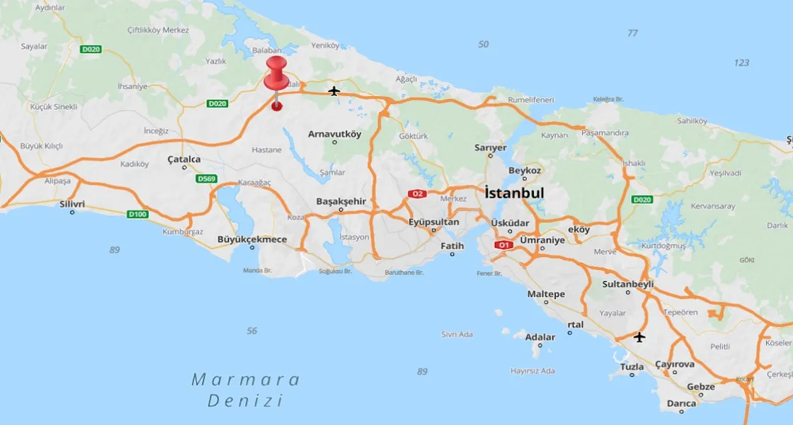 - تقع غرب قناة اسطنبول وتبعد عنها مسافة 1 كيلومتر