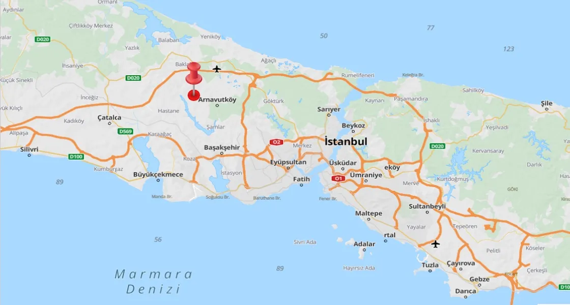 - تبعد عن قناة اسطنبول الجديدة مسافة 2.5 كيلومتر