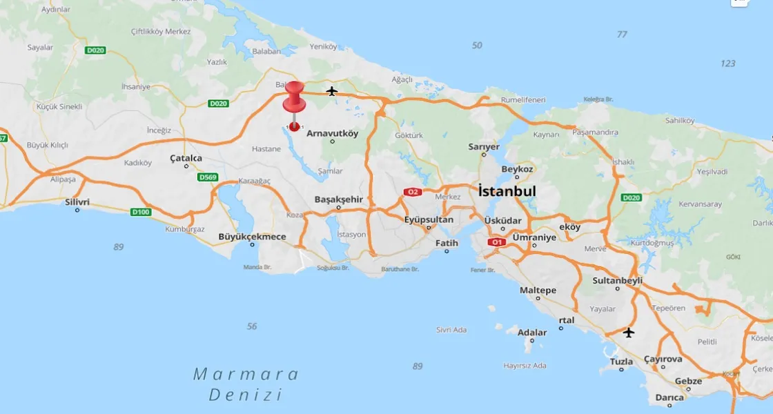 - تبعد عن قناة اسطنبول الجديدة مسافة 1.7كيلومتر