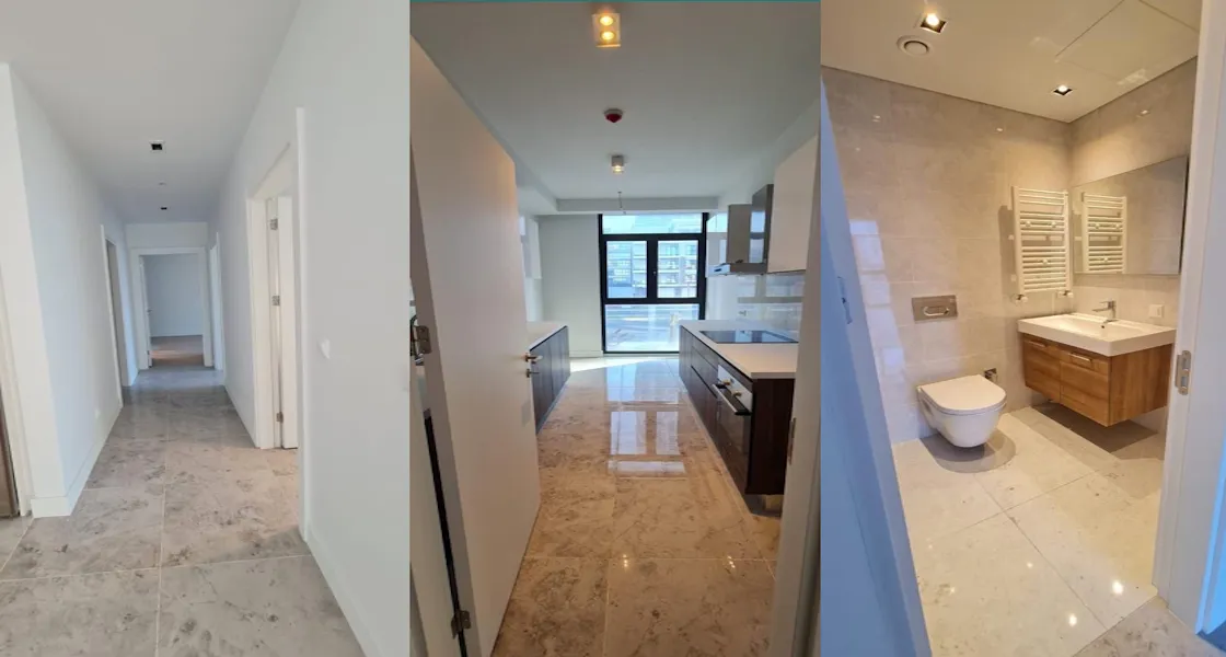 للبيع في مجمع سكني مميز في منطقة بهجة شهير ضمن بلدية باشاك شهير على الجانب الاوروبي من اسطنبول – شقة في الطابق الاول غرفتين وصالة 2+1 مساحة الشقة 125 متر مربع – حمامين