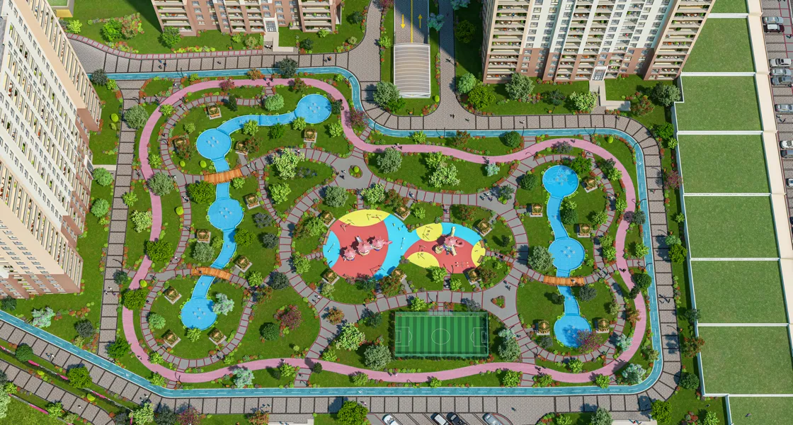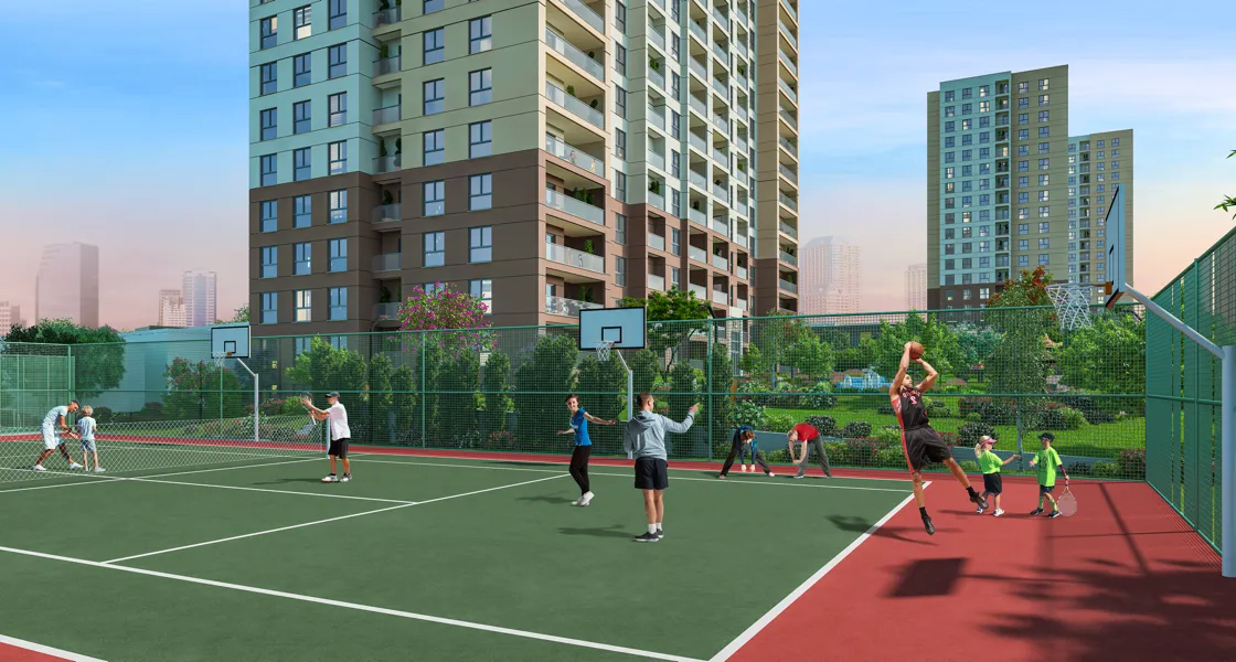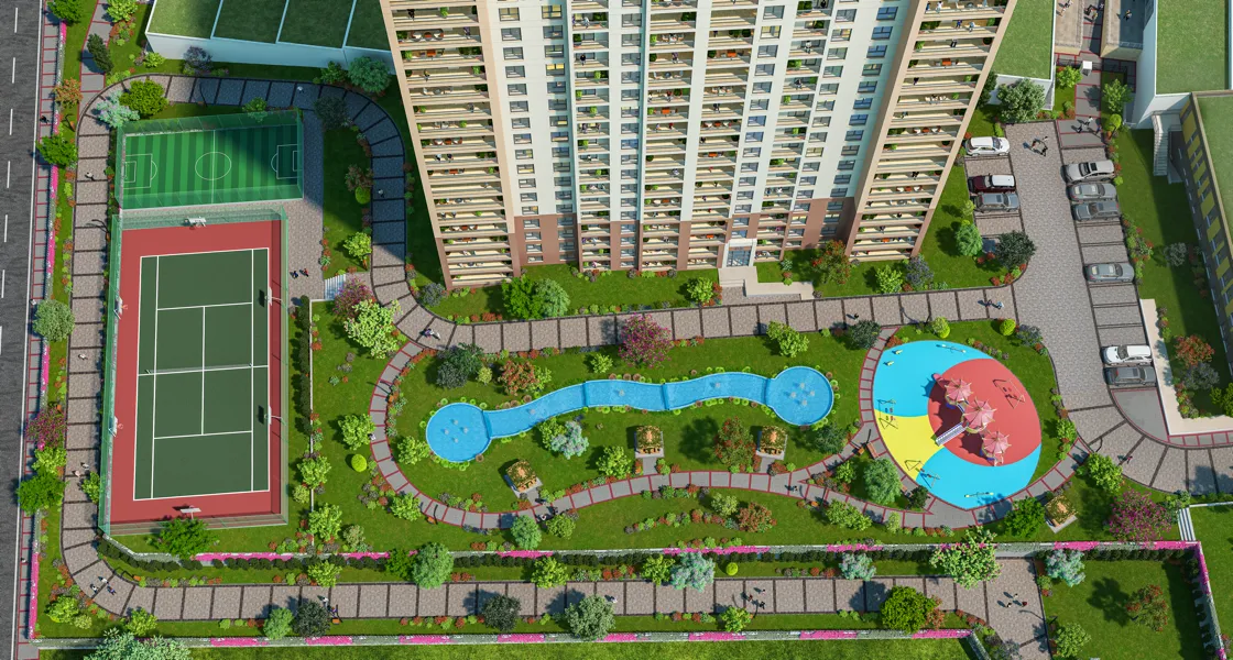 تم بناء المشروع على ارض تبلغ مساحتها 52000 متر مربع ، 40000 متر مربع من هذه المساحة مخصصة للمساحات الخضراء والملاعب الترفيهية والباقي من مساحة المشروع تم انشاء 6 بلوكات او ابنية سكنية تتراوح ارتفاعاتها مابين 17 الى 20 طابق ، بحيث يبلغ عدد الشقق الاجمالية فيه 582 عقار سكني و 55 محل تجاري ، تتوفر فيه خيارات وانماط من الشقق هي 3+1 و 4+1 بمساحات تبدأ من 168ولغاية 229 متر مربع .