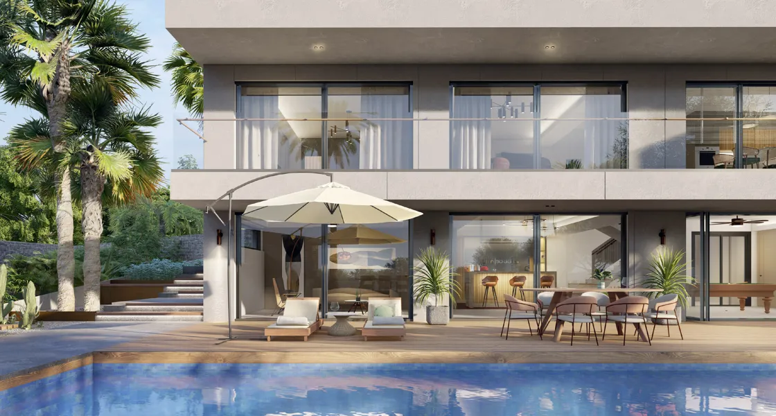 ♦ تتكون من 11 فيلا مستقلة ، لكل منها مسبح خاص وحديقة. ♦ إجمالي مساحة الأرض 7.700 م 2